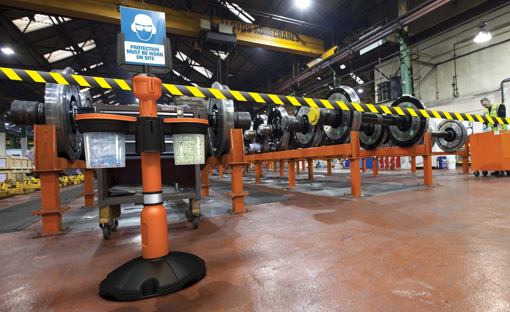 - Create a free standing safety station by attaching up to 2 Safety Dispensers to the Skipper Post & Base System (via the Post & Base Collar)